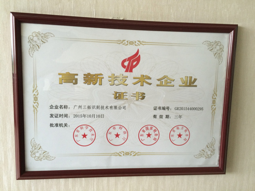 近日,根據(jù)《高新技術(shù)企業(yè)認(rèn)定管理辦法》和《高新技術(shù)企業(yè)認(rèn)定管理工作指引》的有關(guān)規(guī)定,經(jīng)廣東省高新技術(shù)企業(yè)認(rèn)定管理工作領(lǐng)導(dǎo)小組辦公室組織認(rèn)定,廣東省科學(xué)技術(shù)廳、廣東省財(cái)政廳、廣東省國(guó)家稅務(wù)局、廣東省地方稅務(wù)局聯(lián)合公布了《廣東省2015年第二批國(guó)家高新技術(shù)企業(yè)認(rèn)定名單》,廣州三拓識(shí)別技術(shù)有限公司通過(guò)了2015年國(guó)家高新技術(shù)企業(yè)認(rèn)定,榮獲“國(guó)家高新技術(shù)企業(yè)”。