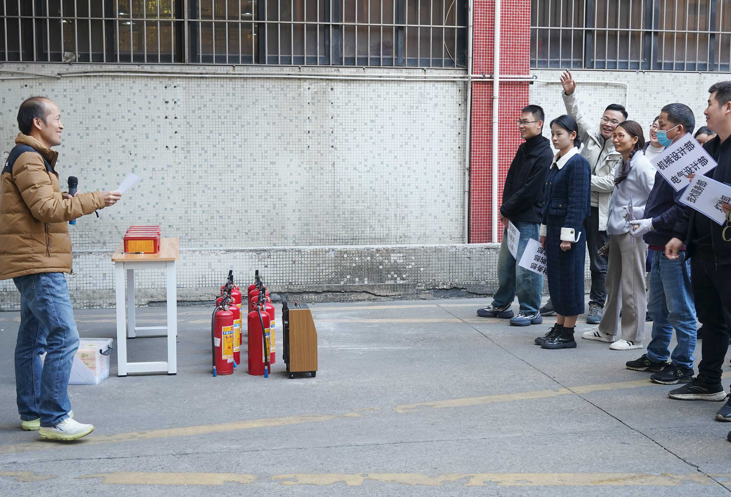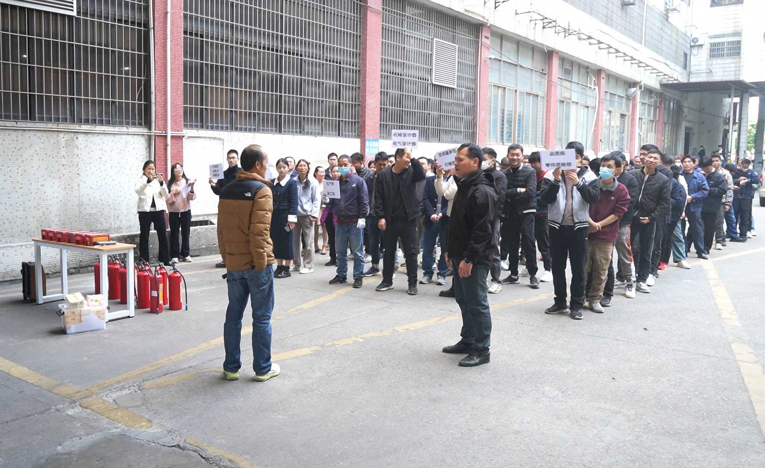 本次演練以公司三樓南面品質部調試區(qū)域發(fā)生火情為背景。