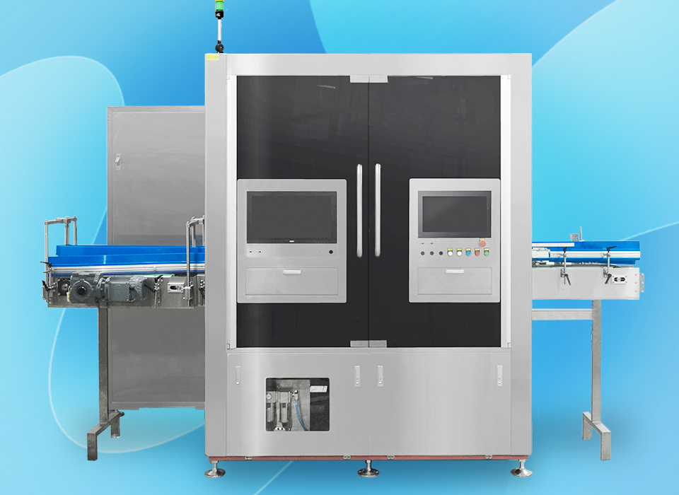 該設備運行中跟隨產品高速連續(xù)拍照,獲取產品各個角度圖像,經(jīng)高速圖像處理器進行處理,檢測軟件運算識別產品是否存在高歪蓋、裝量超標、外觀缺陷、內容物雜質異物等瑕疵,并區(qū)分剔除出來,主要適用于眼藥水瓶、西林瓶、口服液瓶等。
