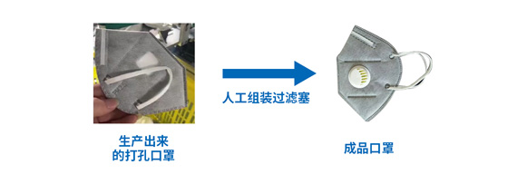 1.打孔口罩還需人工組裝過濾塞(如下圖).
