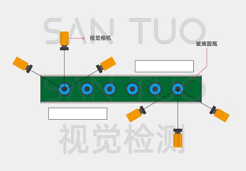 為了確保瓶身不發(fā)生質(zhì)量問(wèn)題,在灌裝階段就需要對(duì)瓶身進(jìn)行周全檢測(cè),對(duì)于產(chǎn)線(xiàn)上高速、高密度的生產(chǎn)環(huán)境,玻璃瓶的檢測(cè)難度還是很高的。但這難不倒三拓技術(shù)的工程師們。