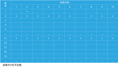 在人工測(cè)試人員測(cè)試結(jié)束后通過(guò)自動(dòng)燈檢機(jī)對(duì)前面人工檢測(cè)的批次也進(jìn)行十次檢測(cè),整個(gè)批次為250瓶,檢測(cè)結(jié)束后,需要將提出瓶的編號(hào)填到一張表格上。