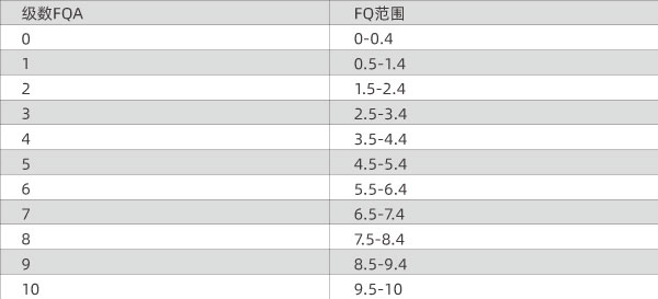 每瓶根據(jù)質(zhì)量因數(shù)會(huì)分成11級(jí),如下;