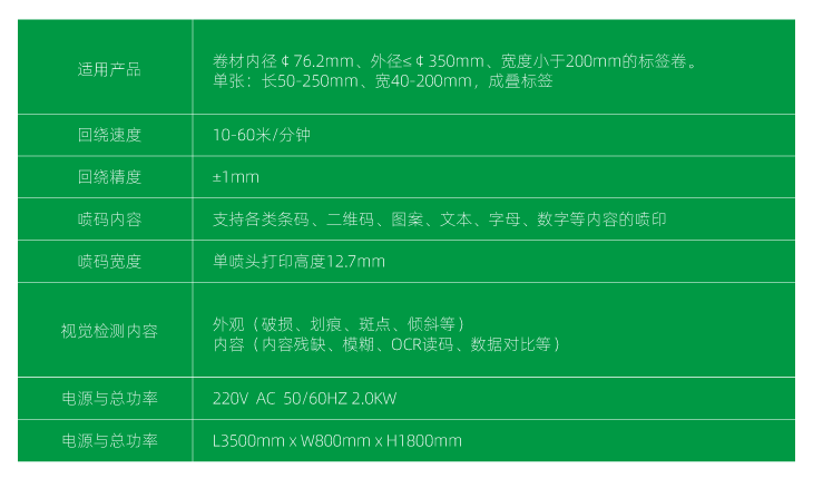 - 集多種功能為一身,可輕松實現(xiàn)成卷標簽和單張成疊標簽的標簽計數(shù)、標簽噴碼、標簽品質(zhì)檢測、剔除標廢以及收料等功能。